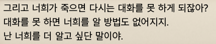 느낌상 누가 죽어서 영원히 이해할 수 없는 루트를 타게 될 것 같은 발언이다.